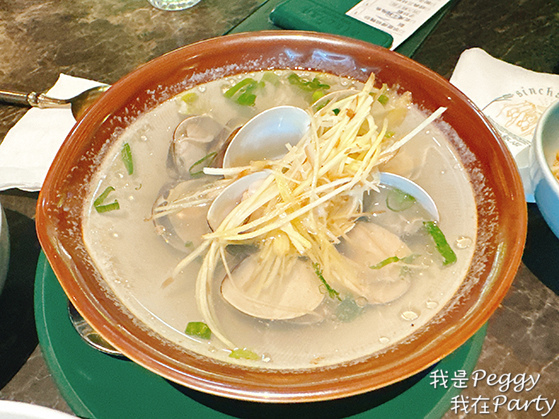 新台菜薑絲蛤蠣湯:蛤蠣新鮮,湯清爽又帶鮮味,薑絲提味剛好,是很有